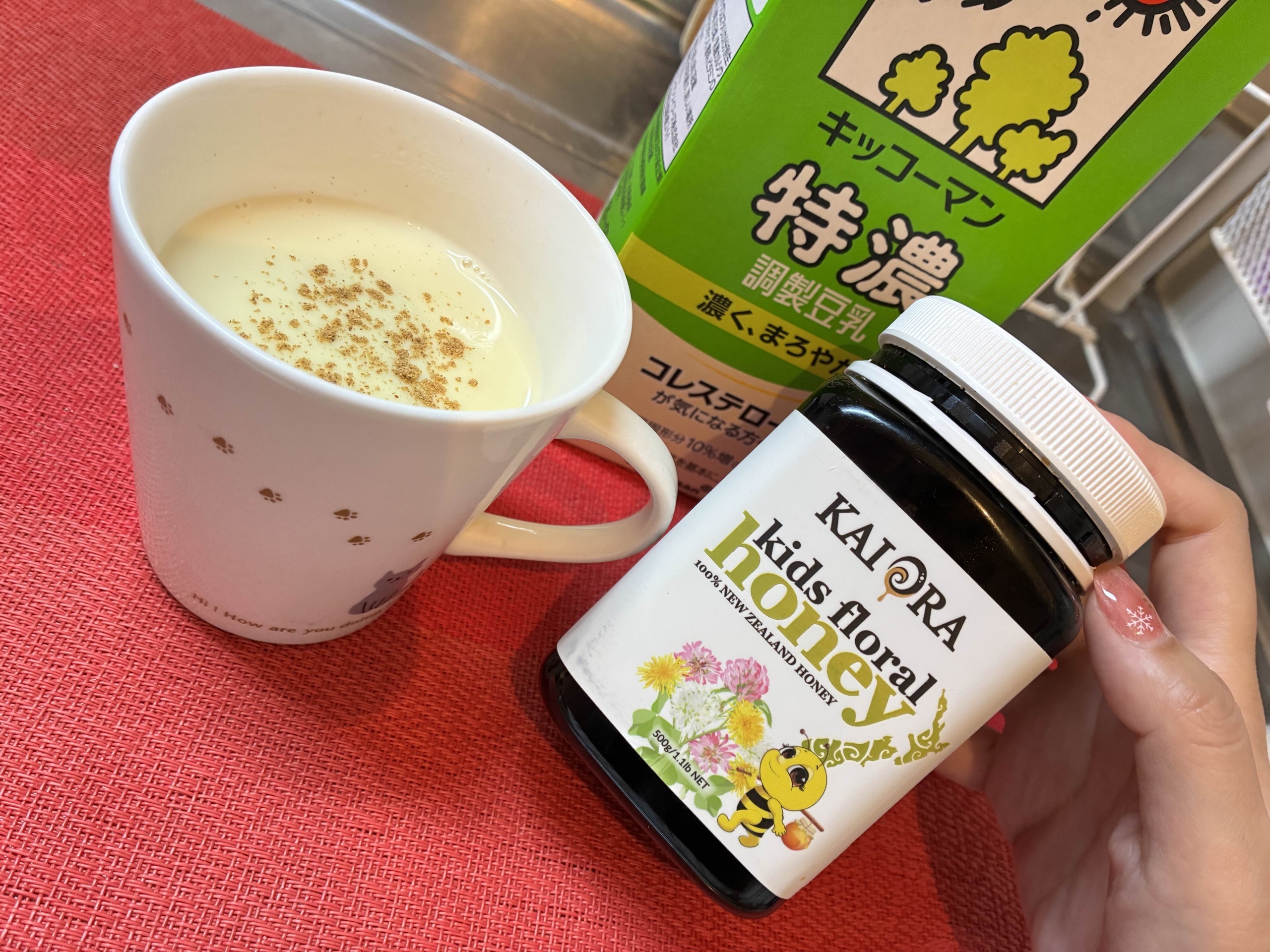 最近はまっているのは、ふんわり温めた豆乳にはちみつとシナモンを入れるシナモン豆乳