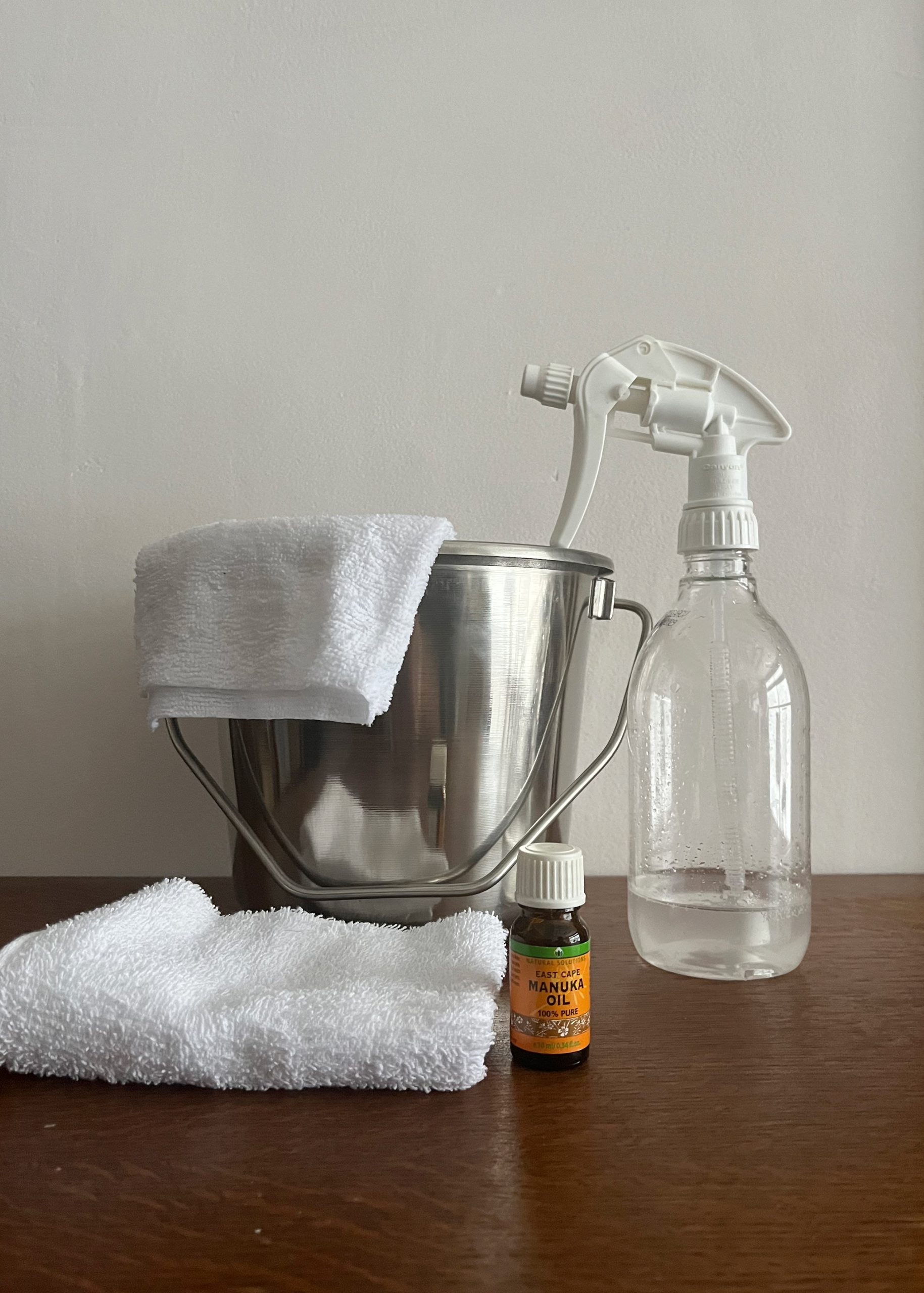 今日はマヌカオイルを入れたスプレーで床や愛犬のクレートを拭きました。