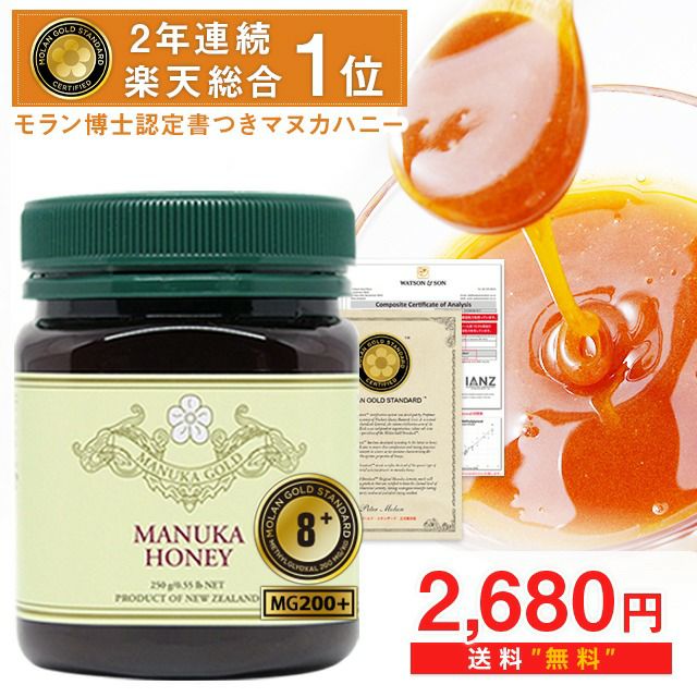 他の画像を見る マヌカハニー 8+ が2680円 MGS認定書/分析書付 250g 1本 MG200以上 モノフローラル 生 はちみつ 非加熱 無添加 マリリニュージーランド 【本店限定!会員パスポートでさらに最大12%OFF】 当店通常価格 ¥ 6,400 販売価格 ¥ 2,680 税込 会員様はさらに2%OFF! ¥ 2,626 税込 詳細を見る お気に入りに登録する