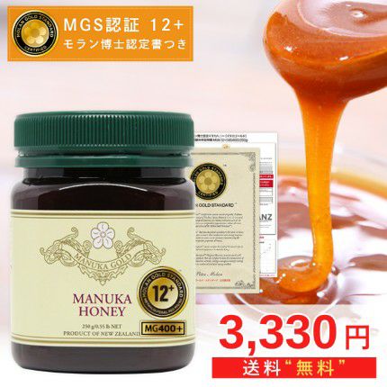 61%OFF! マヌカハニー 12+ が3330円&1本から送料無料!どなたでもご購入OK! MGS認定書/分析書付 250g 1本 MG400以上 モノフローラル 生 はちみつ 非加熱 無添加 マリリニュージーランド 【本店限定!会員パスポートでさらに最大12%OFF】