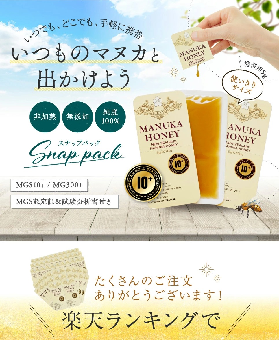 マヌカハニー 10+ 5g 50個 スナップパック 分析書付 MGS認証 マヌカゴールド MG300以上 モノフローラル 生 はちみつ 非加熱 無添加 【本店限定!会員パスポートでさらに最大12%OFF】【送料無料】