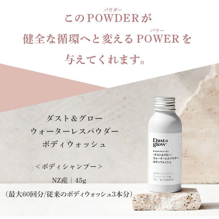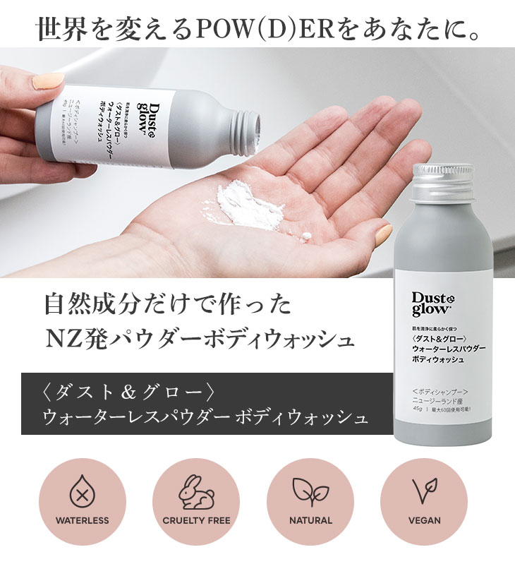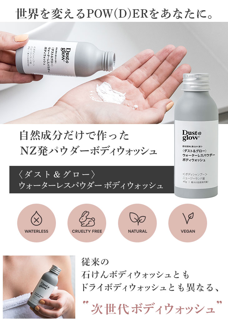 【D&G全種類対象!2本で20%OFF/3本以上で30%OFF!】ダスト&グロー ウォーターレスパウダー ボディウォッシュ 45g(最大60回使用可能)マリリニュージーランド【本店限定!会員パスポートでさらに最大12%OFF】