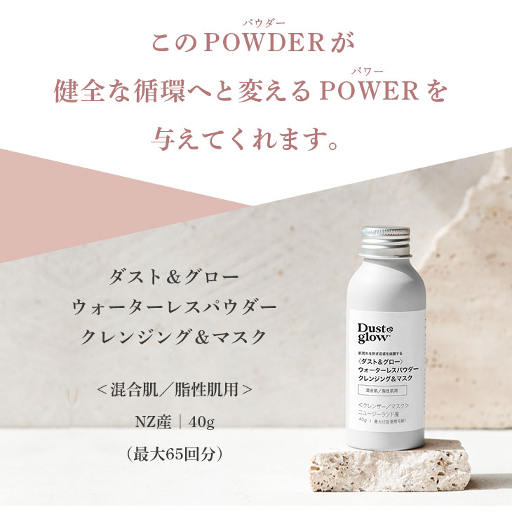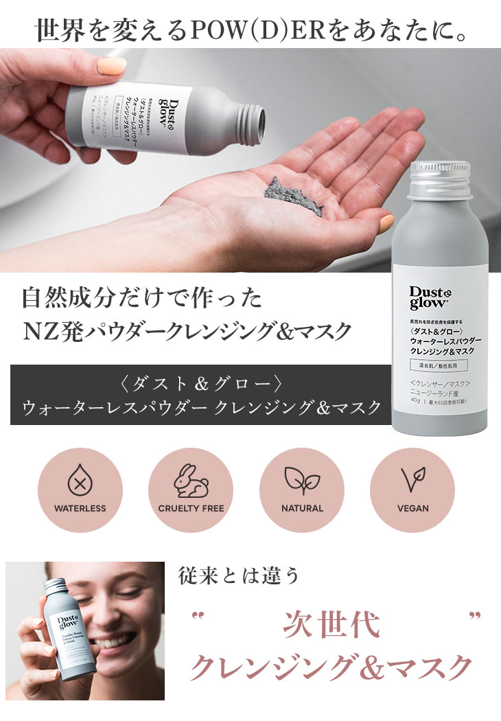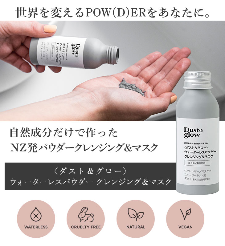 【D&G全種類対象!2本で20%OFF/3本以上で30%OFF!】ダスト&グロー ウォーターレスパウダー クレンジング&マスク 混合肌 40g(最大65回使用可能)マリリニュージーランド【本店限定!会員パスポートでさらに最大12%OFF】