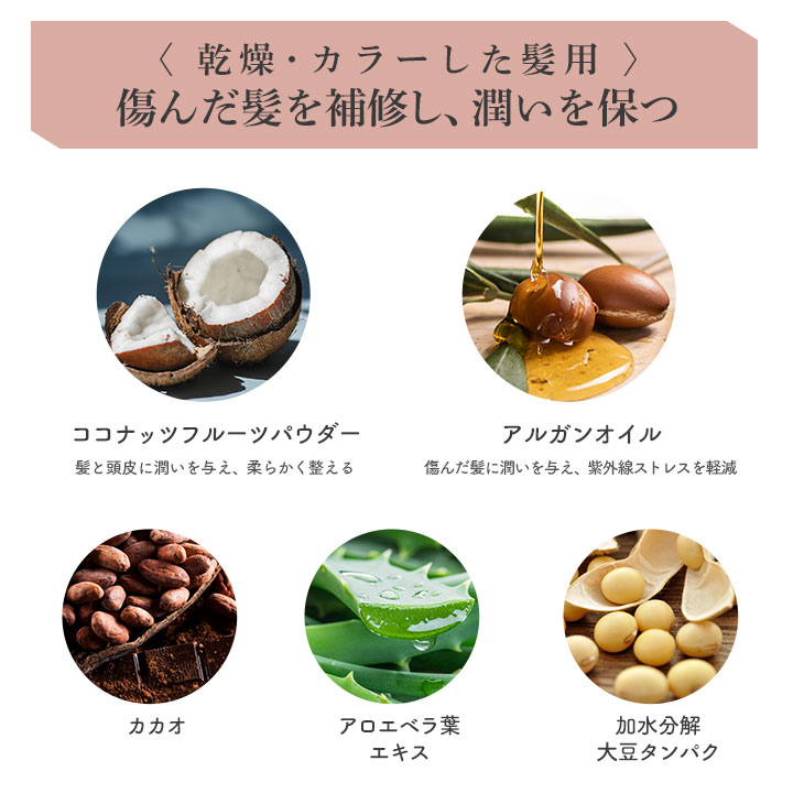 ココイルイセチオン酸Na、コメデンプン、ココヤシ果実、カカオ種子、グアーヒドロキシプロピルトリモニウムクロリド、アルガニアスピノサ核油、アロエベラ葉エキス、加水分解ダイズタンパク、ベタイン、マルトデキストリン、乳酸桿菌、ポリムニアソンチホリア根汁、α-グルカン