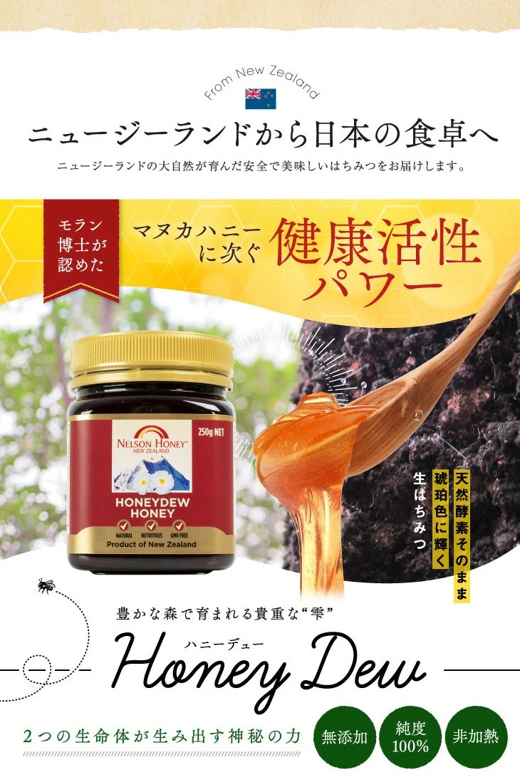 生 はちみつ 250g 1本 【 マヌカハニー を超える栄養素!】 ハニーデュー はちみつ 非加熱 無添加 純粋 ハチミツ 蜂蜜 【本店限定!会員パスポートでさらに最大12%OFF】【送料無料】初回限定