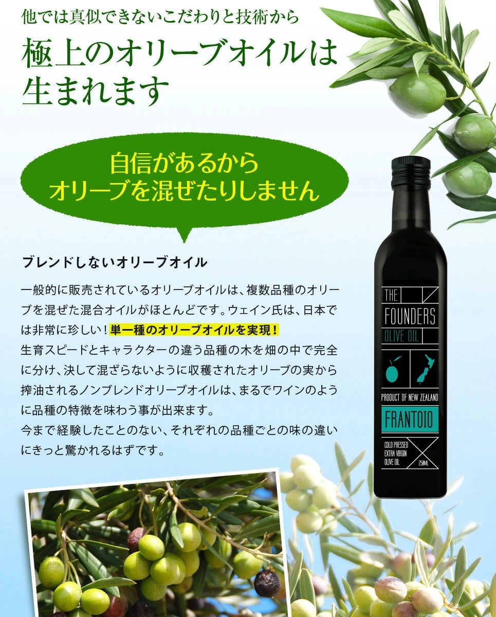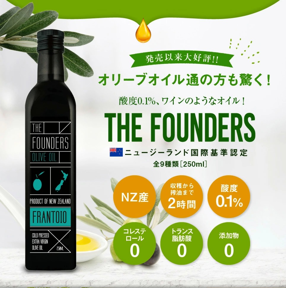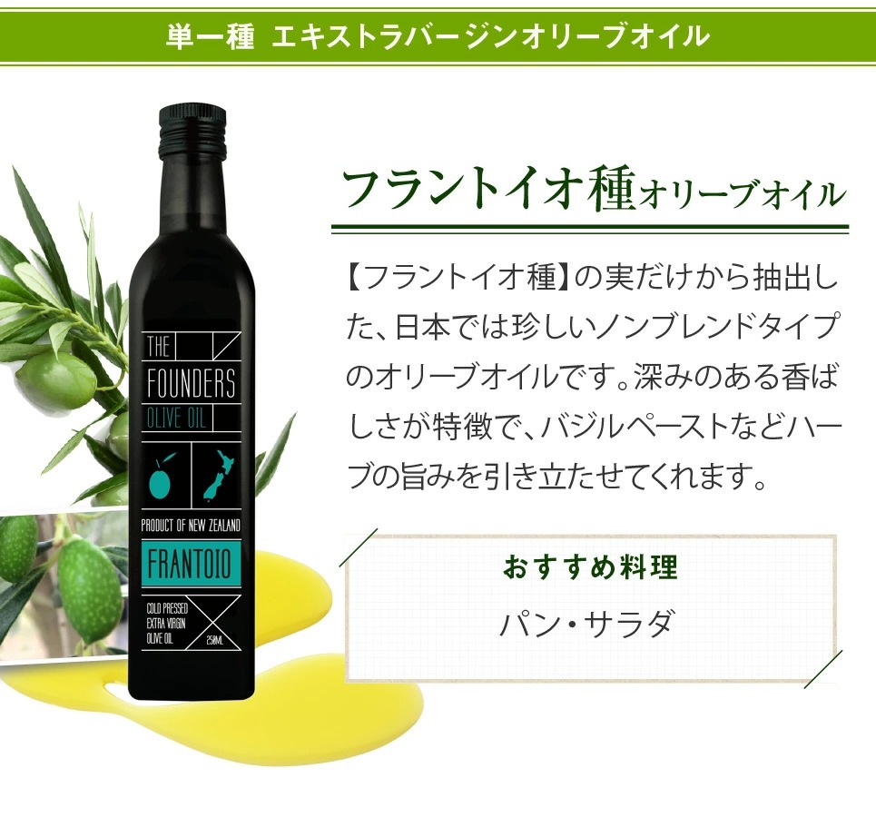 今なら10%OFF! オリーブオイル エキストラバージン 単一種フラントイオ 250ml 1本【THE FOUNDERS】ニュージーランド産 無添加 マールボロ シングルオリジン 【本店限定!会員パスポートでさらに最大12%OFF】