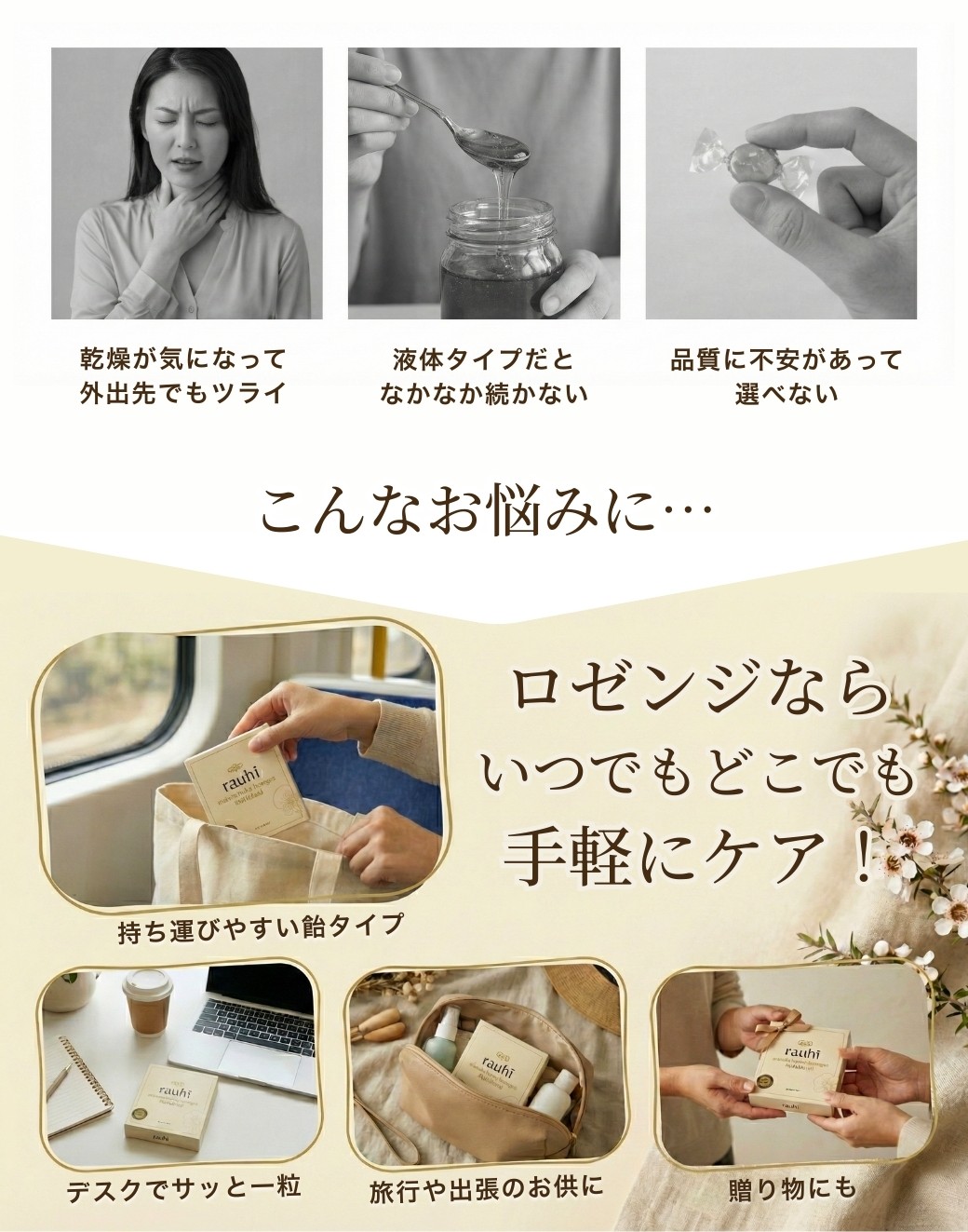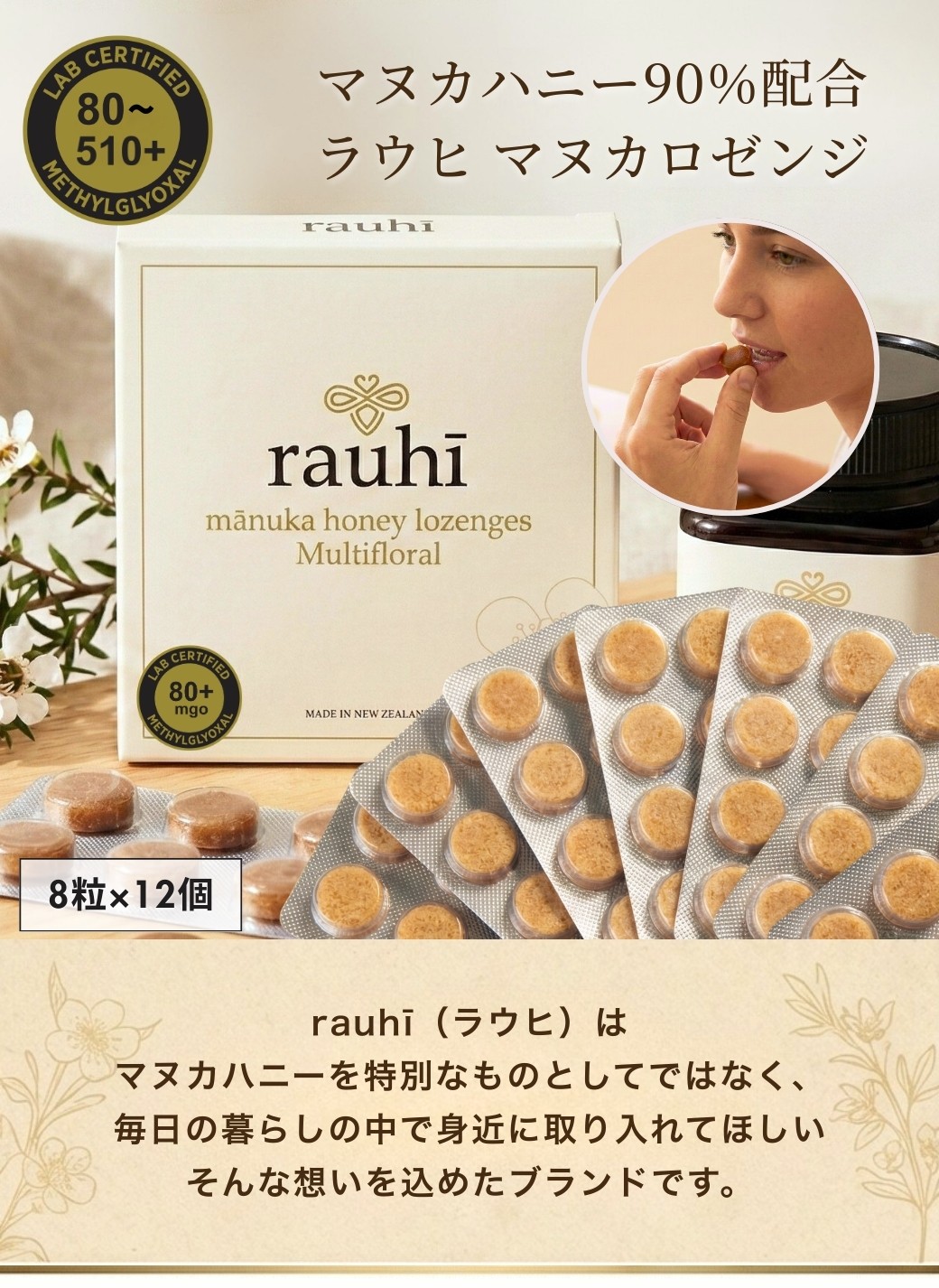 本店新登場!マヌカロゼンジ MG80+ マルチフローラル マヌカハニー 飴 キャンディー 8粒×12個 Rauhi(ラウヒ) マヌカハニー MG80+ を90%配合! のど飴 はちみつ ニュージーランド産 マリリニュージーランド【送料無料】【ネコポス】 【本店限定!会員パスポートでさらに最大12%OFF】