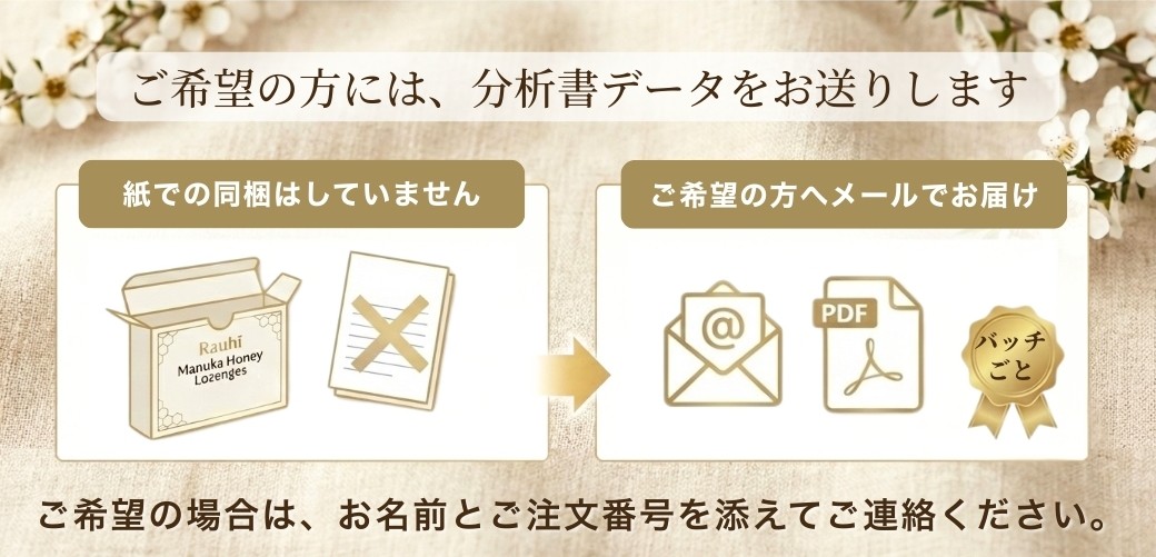 マヌカハニー、ステアリン酸カルシウム、マルトデキストリン(トウモロコシ由来)
