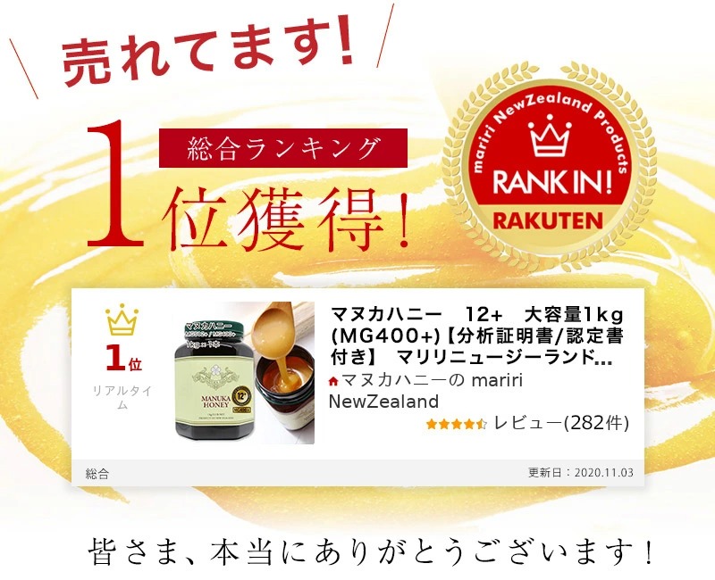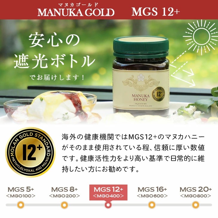 最近マヌカハニーにはまっており、この度半額セールだったのでMGO400をかってみました。味も悪くなく口内炎にも良かったような気がします。風邪予防を兼ね、こちらの方を続けてみようと思います。