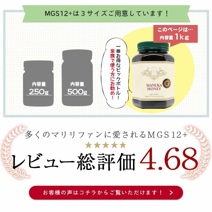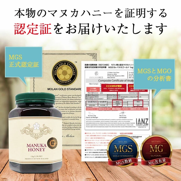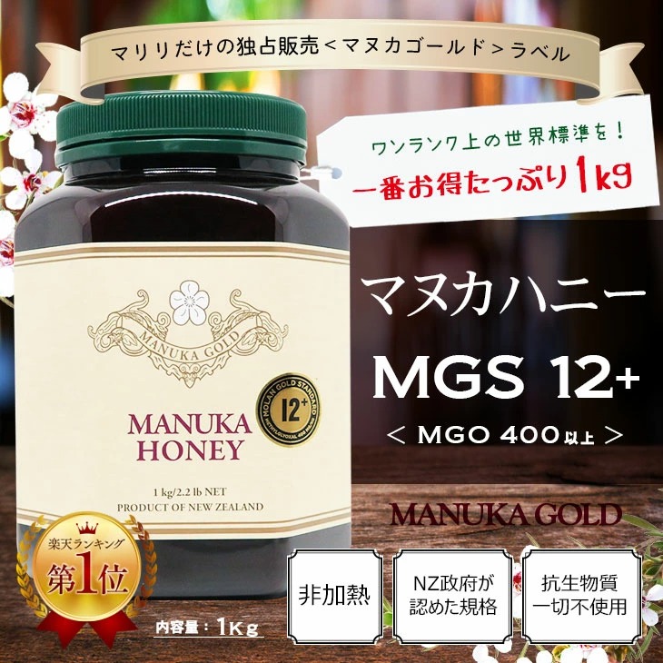 マヌカハニー 12+ 1kg 1本 認定書/分析書付き MGS認証 マヌカゴールド MG400以上 モノフローラル 生 はちみつ 非加熱 無添加 【本店限定!会員パスポートでさらに最大12%OFF】