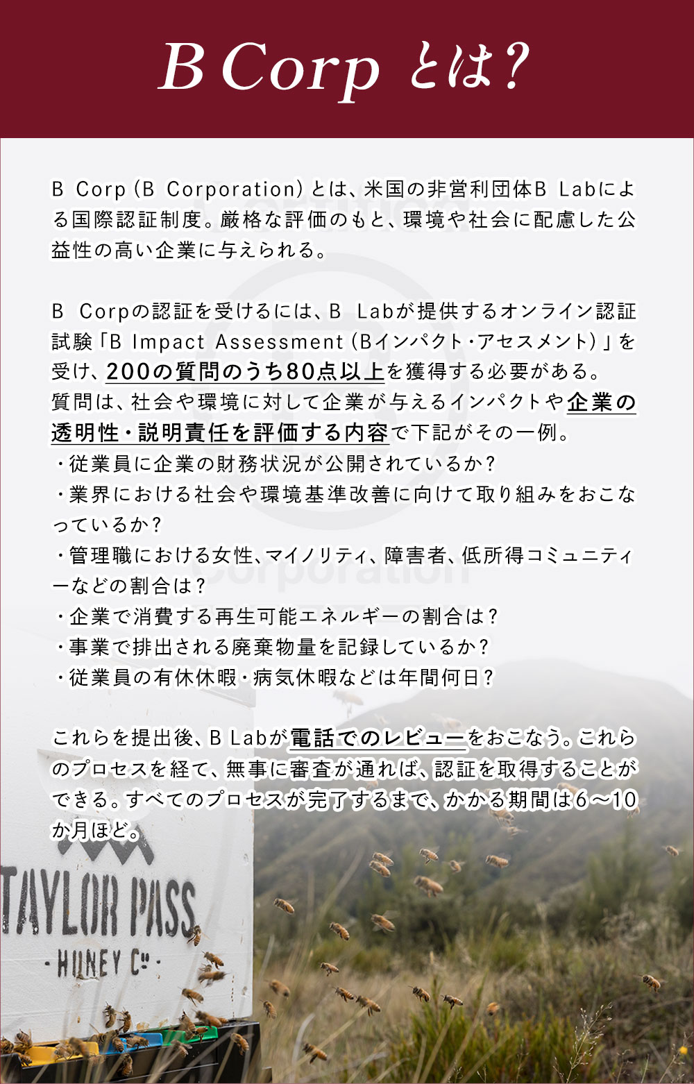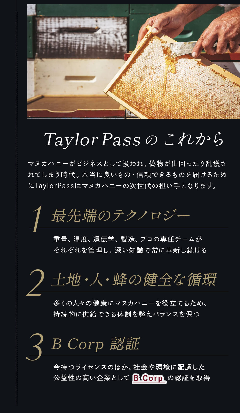 世界基準「B-Corp」取得マヌカハニー TaylorPass