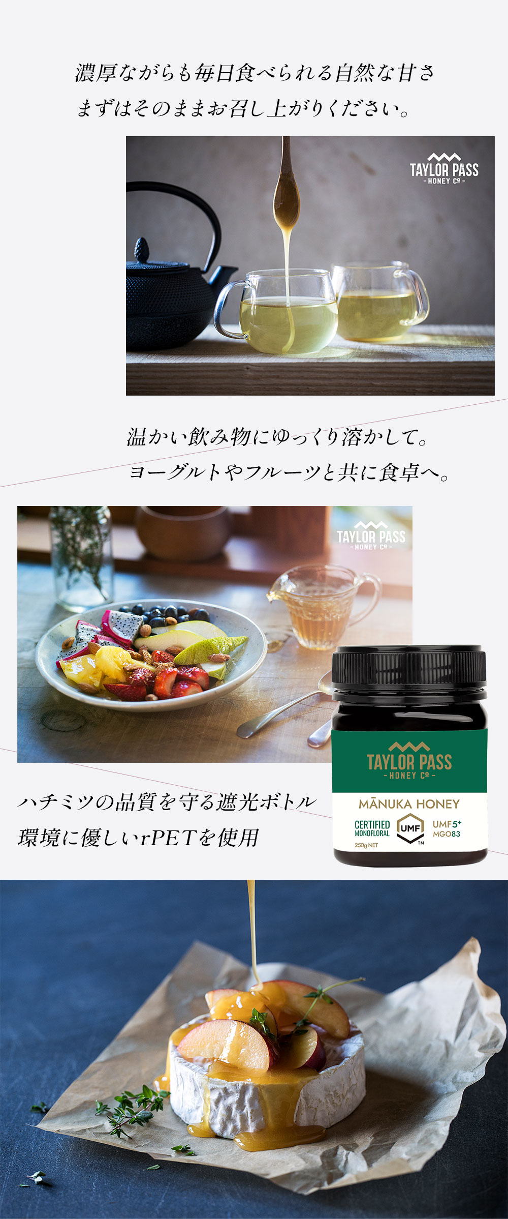 米国の「B corp(ビーコープ)」認証のハイクオリティ・サステナブル・最新鋭のTaylorPass社がつくるUMFマヌカハニー。UMF協会認定。健康管理を目的とした方や効果を実感したい方にオススメの数値です♪