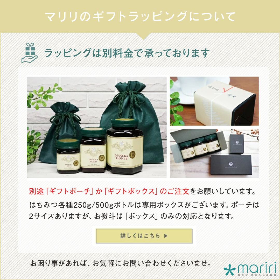 お試しとしてだけでなく、日々の健康管理にもしっかりご利用いただける数値。マヌカハニー入門用として最適です。比較的お求めやすい価格ですので、お料理やスイーツなどにもご利用いただきやすいマヌカハニーです♪ |